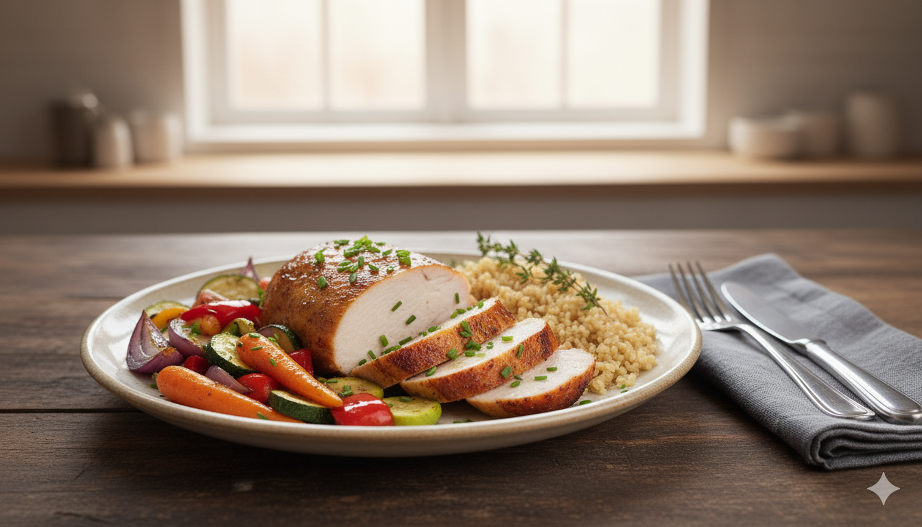Posiłki dietetyczne cukrzyca, dieta cukrzycowa, indyk, kasza jęczmienna, posiłki niskoglikemiczne, zdrowe odżywianie Indyk z kaszą i warzywami: Idealny posiłek dla diabetyków