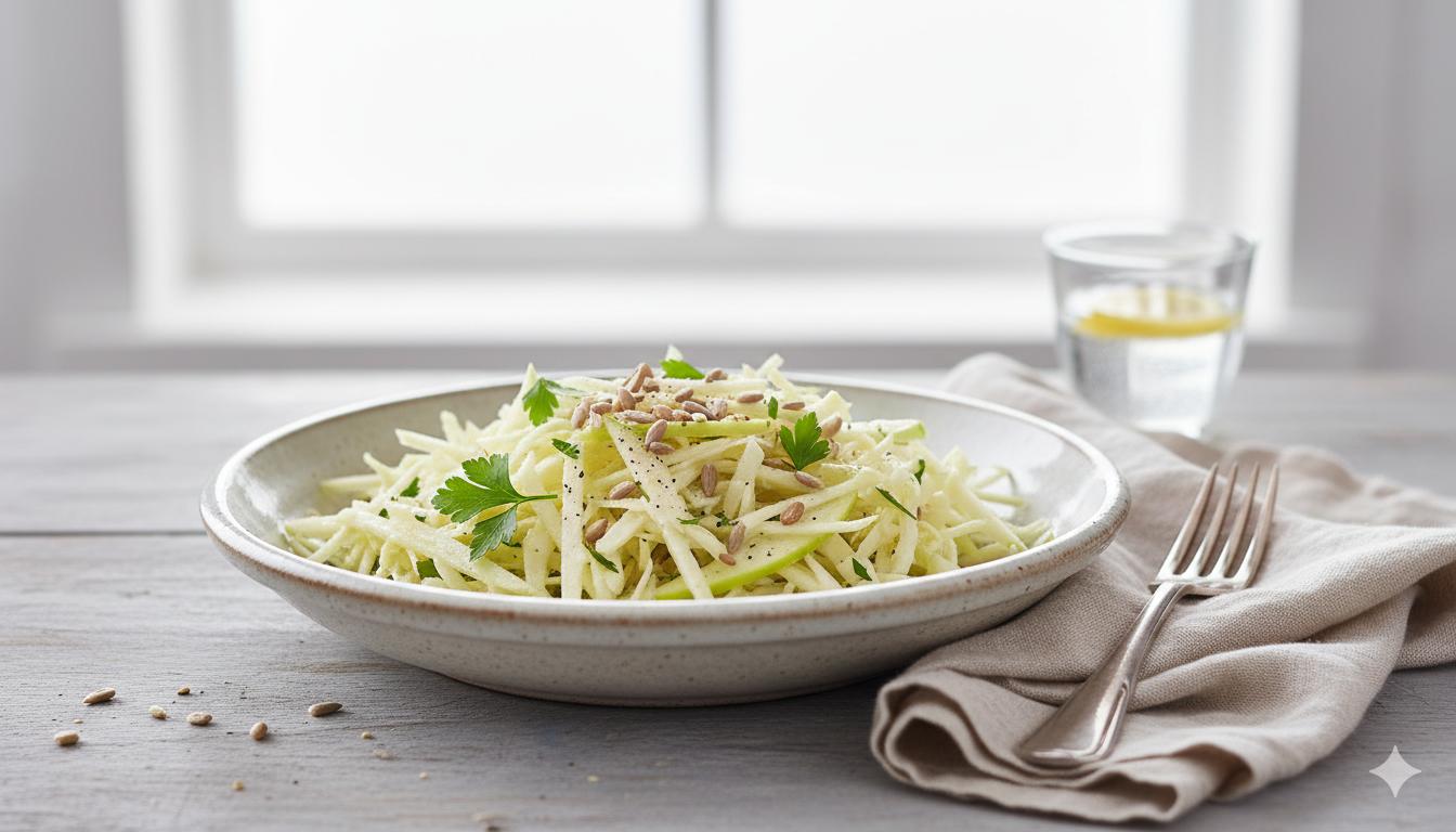 Posiłki dietetyczne Zdrowie dieta wegetariańska, przepisy wegetariańskie, surówki, zdrowe odżywianie Prosta surówka z selera i jabłka: Lekka, chrupiąca i pełna witamin