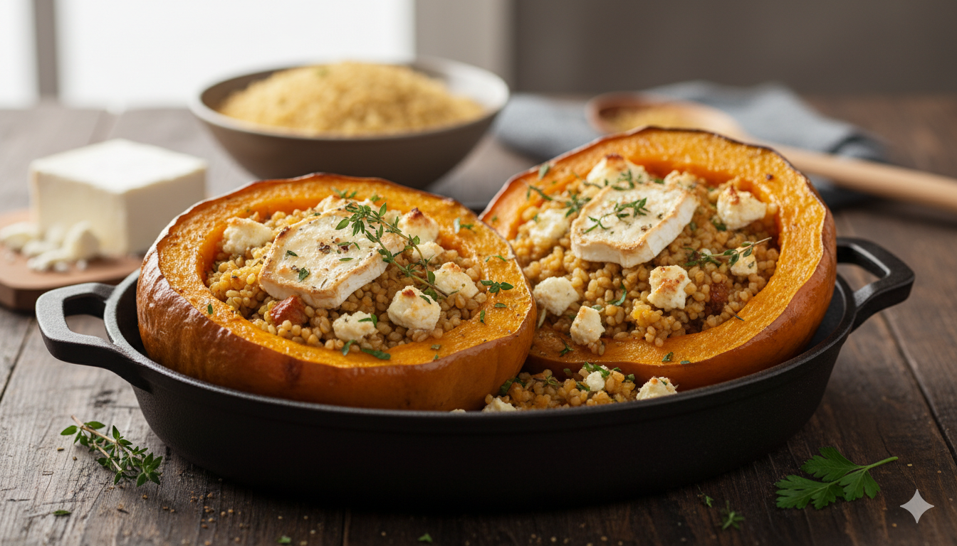 Posiłki dietetyczne Zdrowie dieta redukcyjna, dynia, kasza bulgur, nadwaga, niskokaloryczne, otyłość Pieczona dynia z serem i kaszą bulgur – niskokaloryczny posiłek dla osób z nadwagą