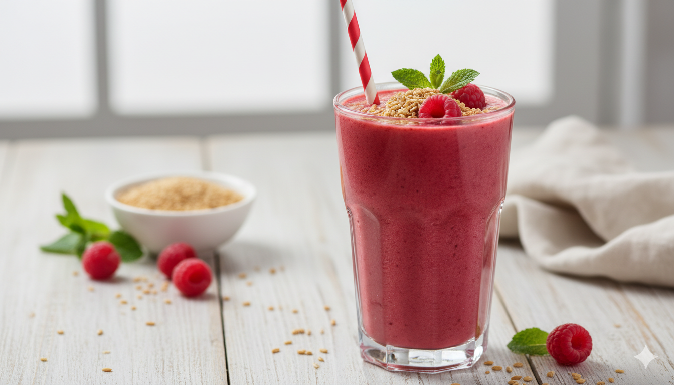 Posiłki dietetyczne Zdrowie błonnik, cukrzyca, koktajle, niski indeks glikemiczny, przekąski, zdrowe odżywianie Malinowy koktajl z otrębami: Idealny wybór dla diabetyków i nie tylko