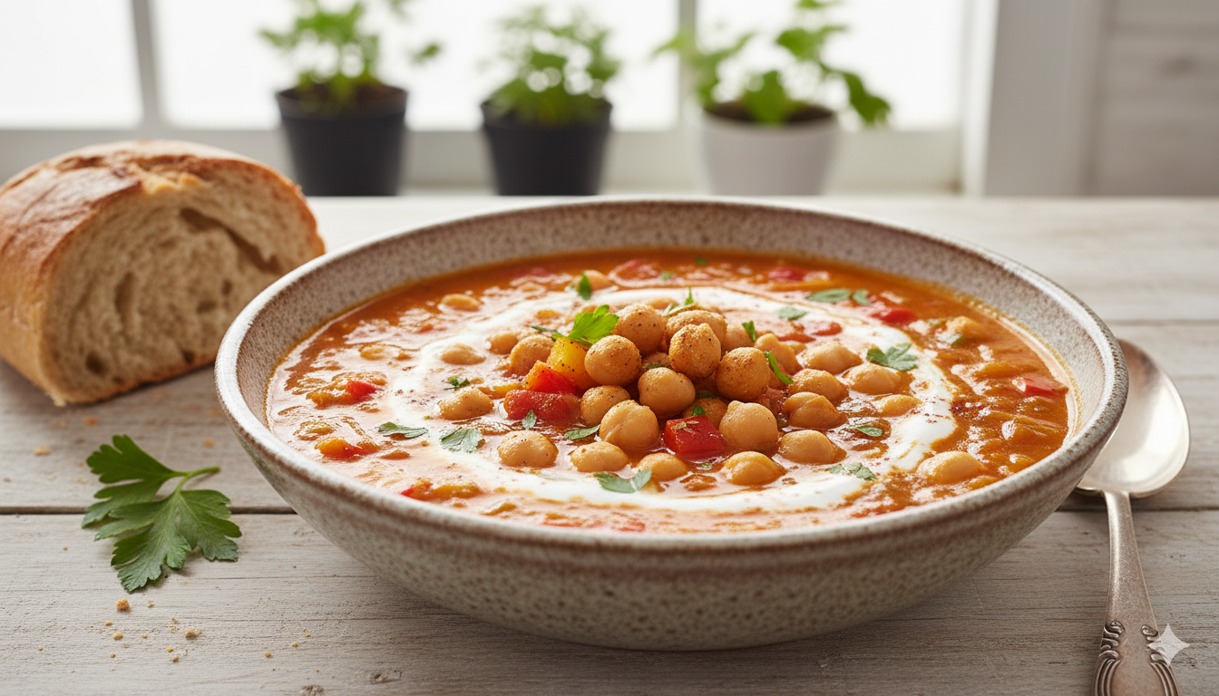 Dieta Poradnik Posiłki dietetyczne błonnik, ciecierzyca, dieta bogatoresztkowa, trawienie, zaparcia, zdrowa żywność Zupa paprykowa z ciecierzycą: naturalny sposób na problemy trawienne