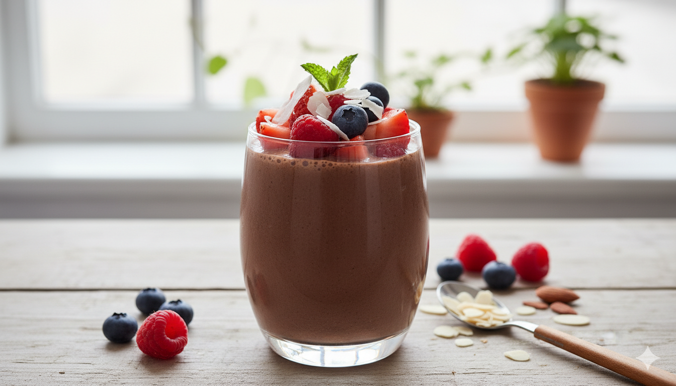 Poradnik Posiłki dietetyczne błonnik pokarmowy, niskokaloryczne desery, probiotyki, przepisy dietetyczne, zaparcia, zdrowe śniadanie Przepis na kakaowy kefir z owocami – naturalny sposób na zaparcia