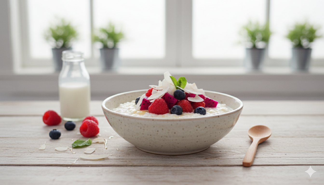 Posiłki dietetyczne błonnik pokarmowy, dania wegetariańskie, dieta na trawienie, probiotyki, zaparcia, zdrowe przepisy Pyszny sposób na problemy trawienne: Kokosowy ryż z owocami